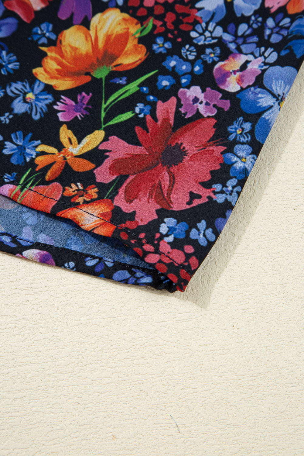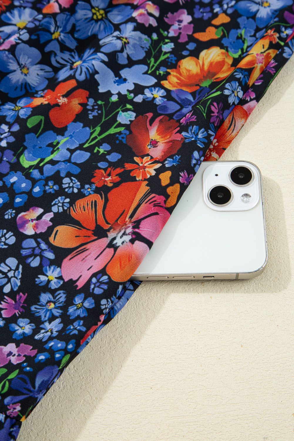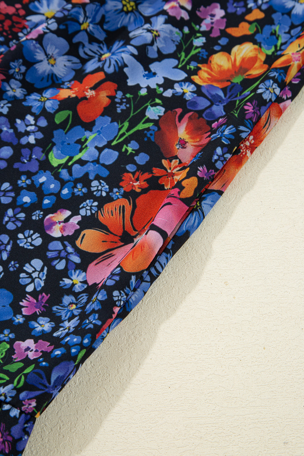 Blue Floral Print V Neck Long Sleeve Flowy Maxi Dress