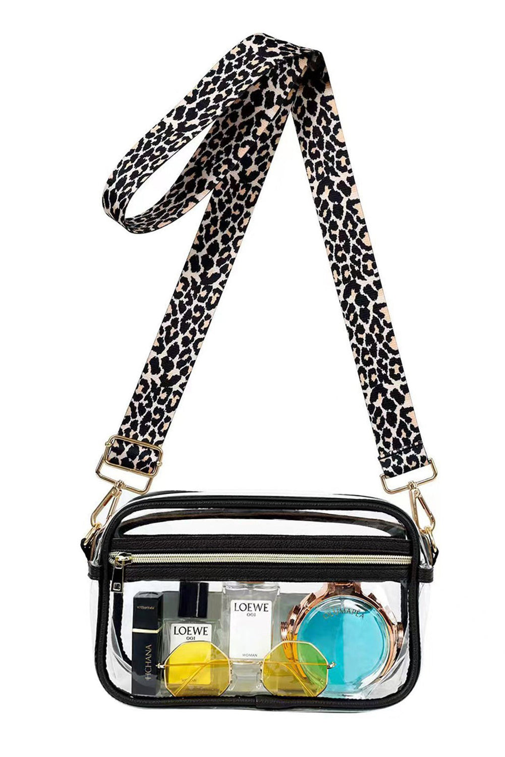- Clear PVC offers a modern look, while the leopard strap adds a chic, trendy touch.