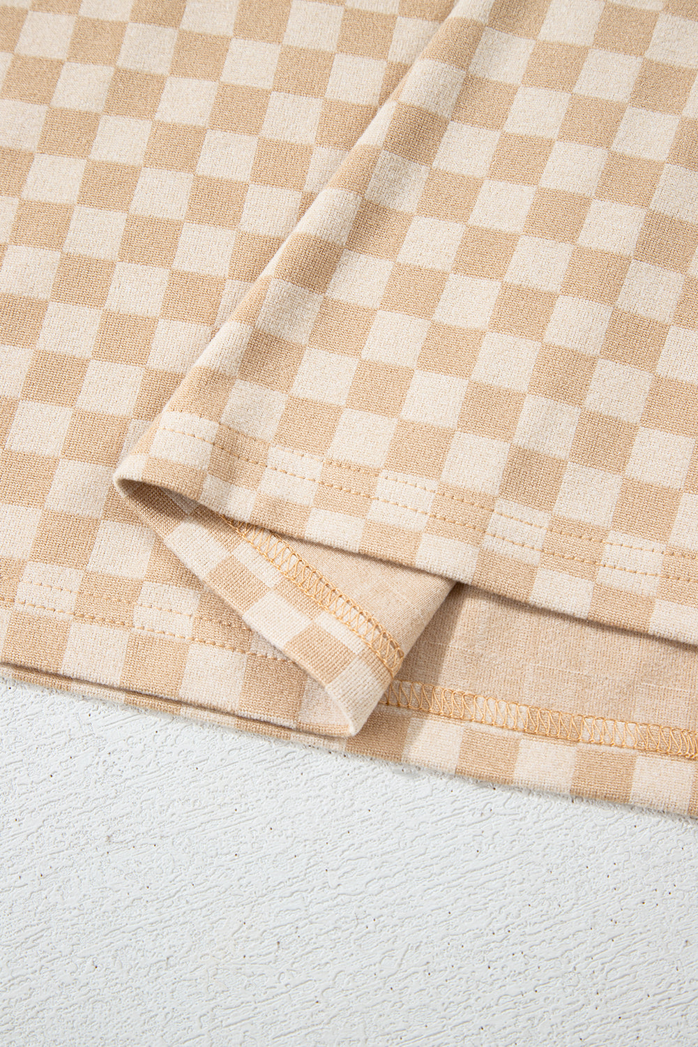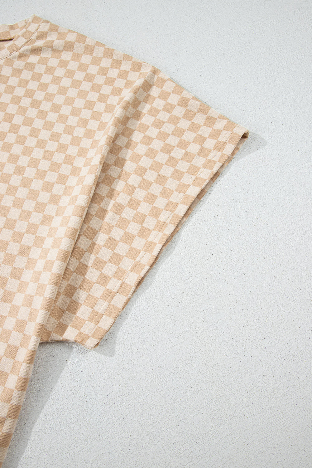 - Embrace comfort and style with the khaki checkered batwing sleeve t-shirt.