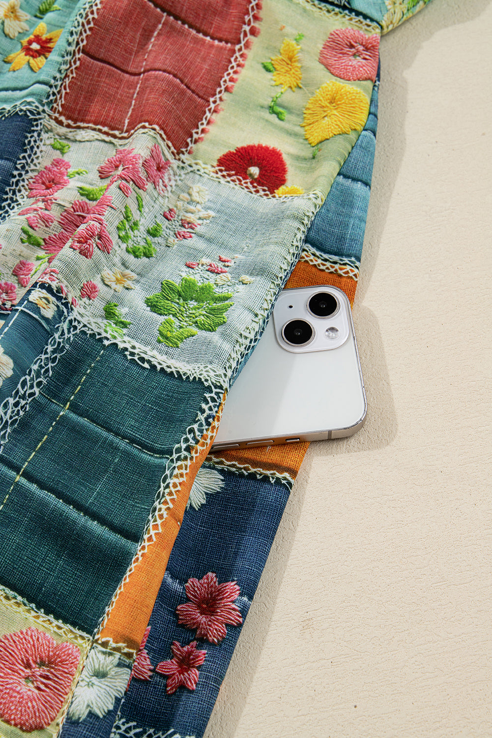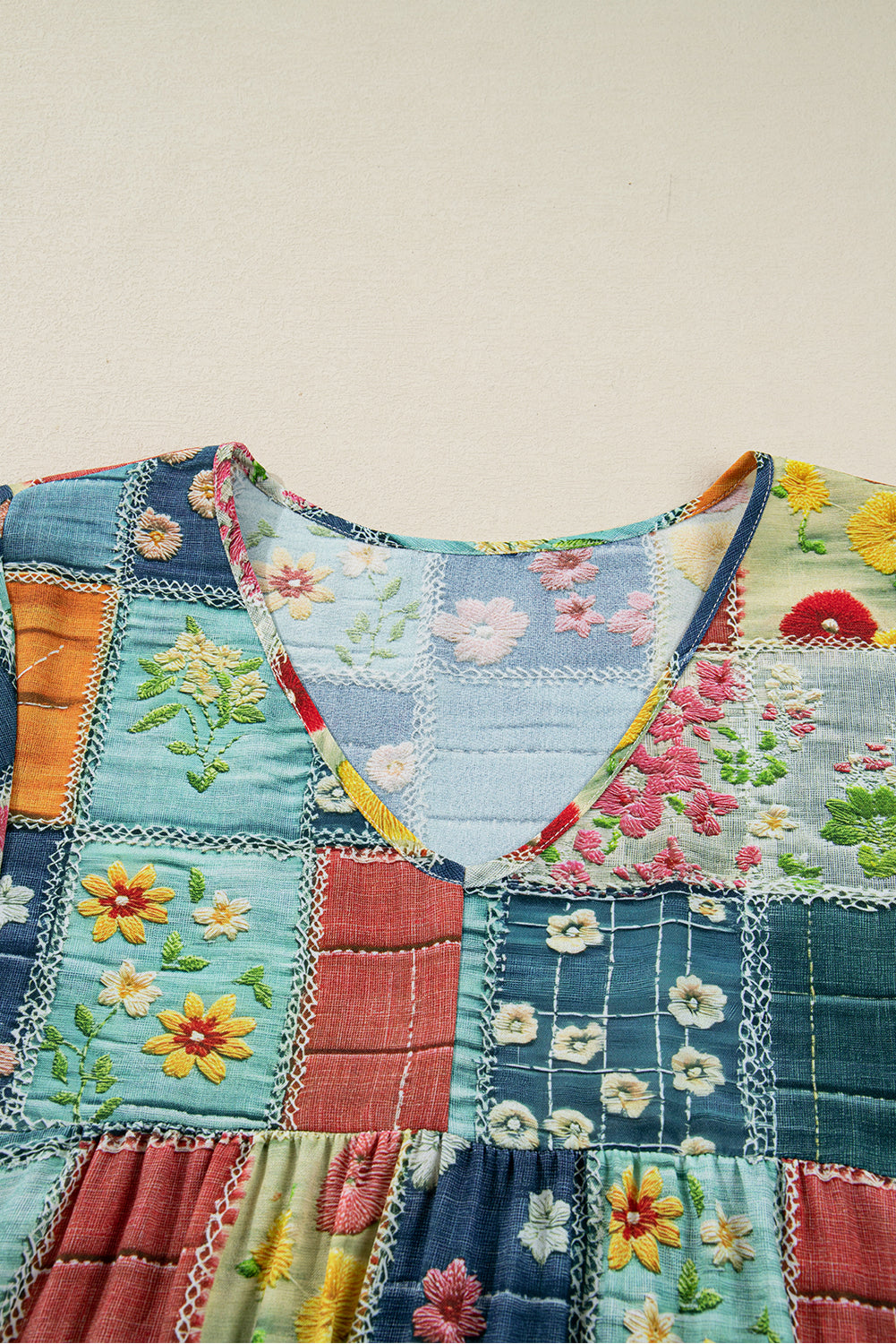 - This dress features a charming colorblock design that effortlessly combines different patterns for a trendy and eye-catching appearance.