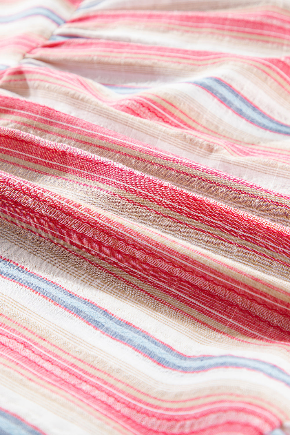 White Stripe Geometric Detail Flared 3/4 Sleeve V Neck Plus Dress